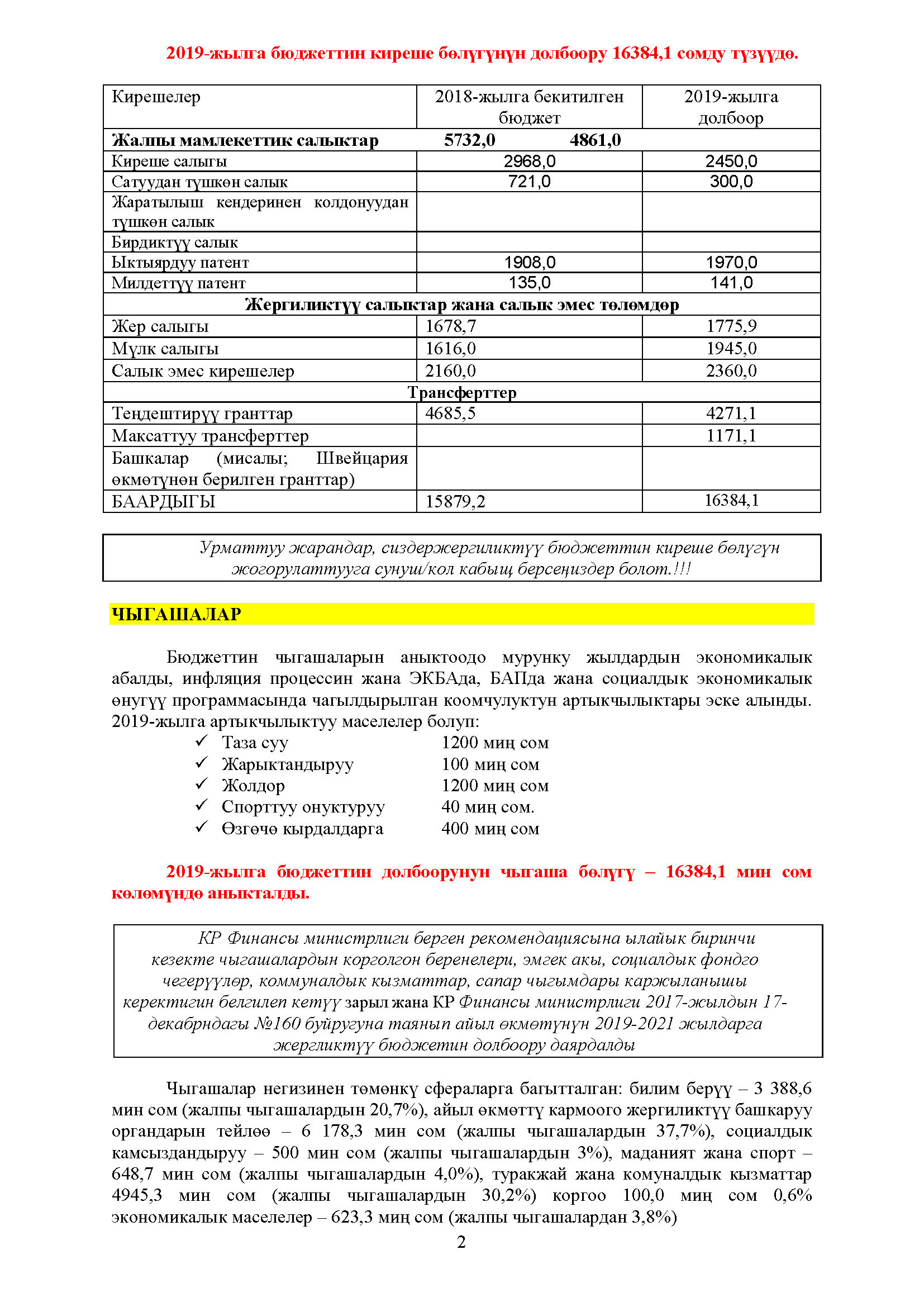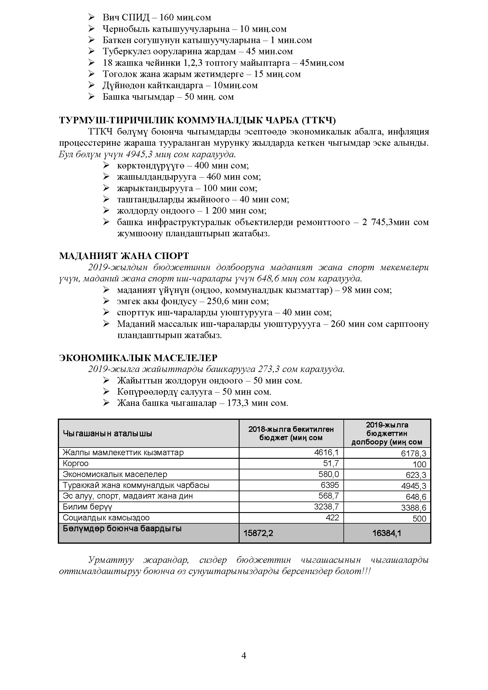 Өнүгүү планынын жыйынтыктары - 2019